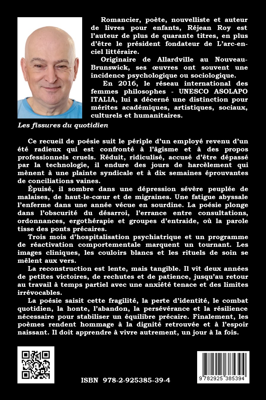 Romancier, poète, nouvelliste et auteur de livres pour enfants, Réjean Roy est l’auteur de plus de quarante titres, en plus d’être le président fondateur de L’arc-en-ciel littéraire.